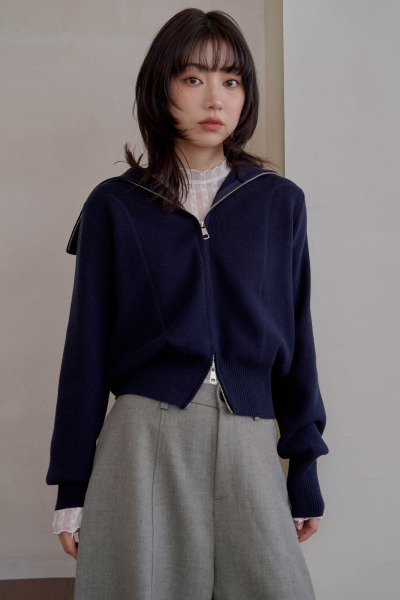雙頭拉鍊設計 可自由變化造型 / 大翻領直紋造型 / 厚磅針織面料 / 袖口、下擺縮口設計