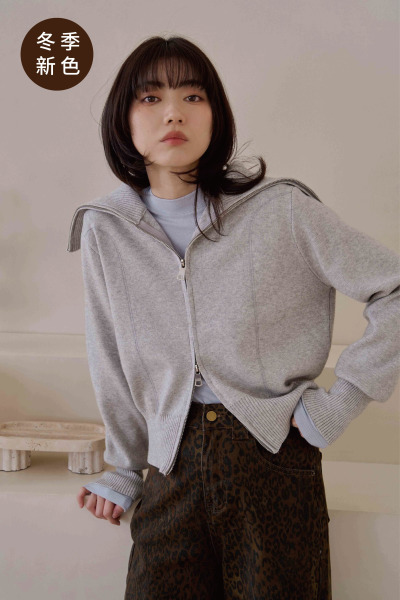 雙頭拉鍊設計 可自由變化造型 / 大翻領直紋造型 / 厚磅針織面料 / 袖口、下擺縮口設計