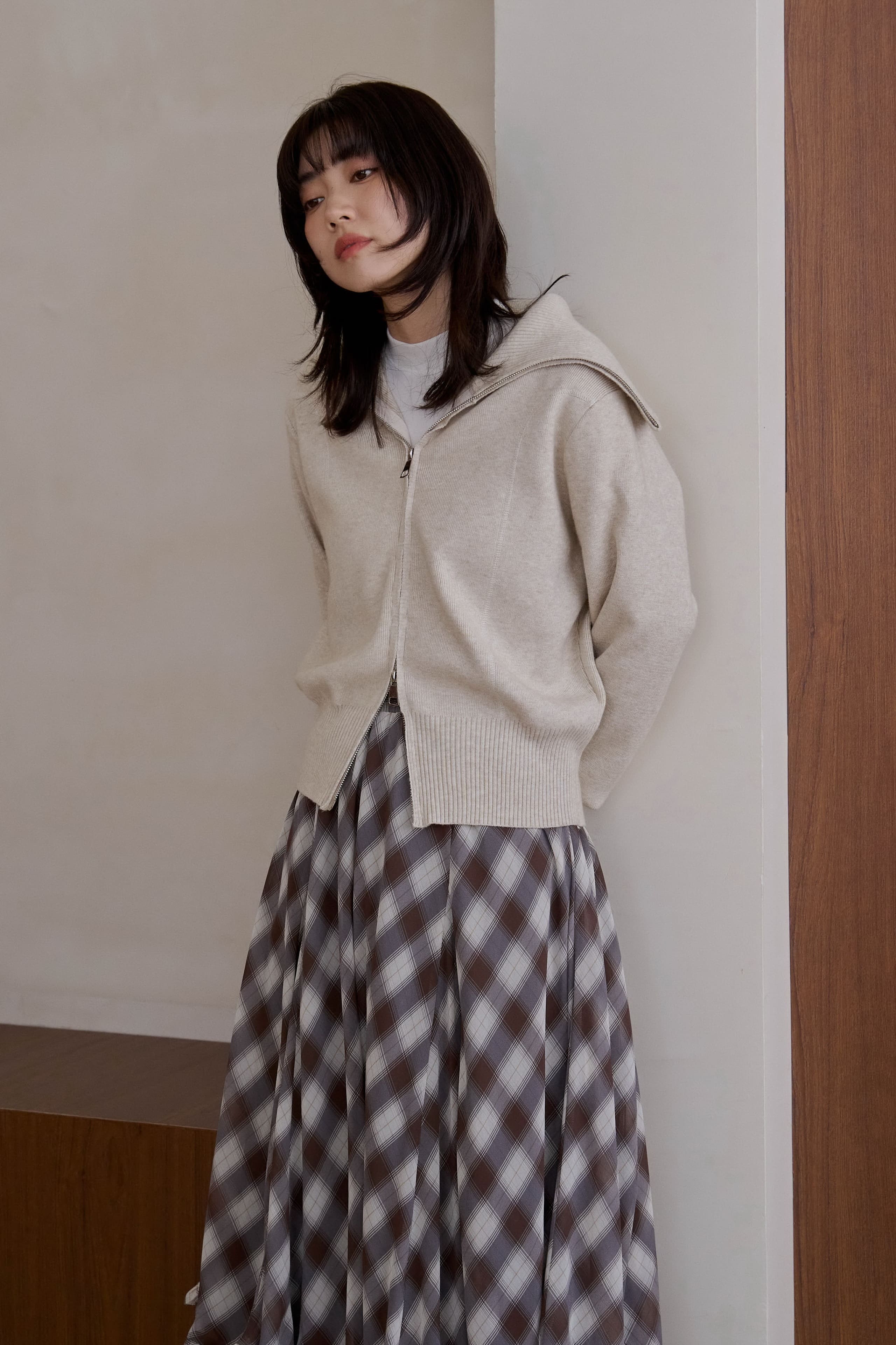 雙頭拉鍊設計 可自由變化造型 / 大翻領直紋造型 / 厚磅針織面料 / 袖口、下擺縮口設計