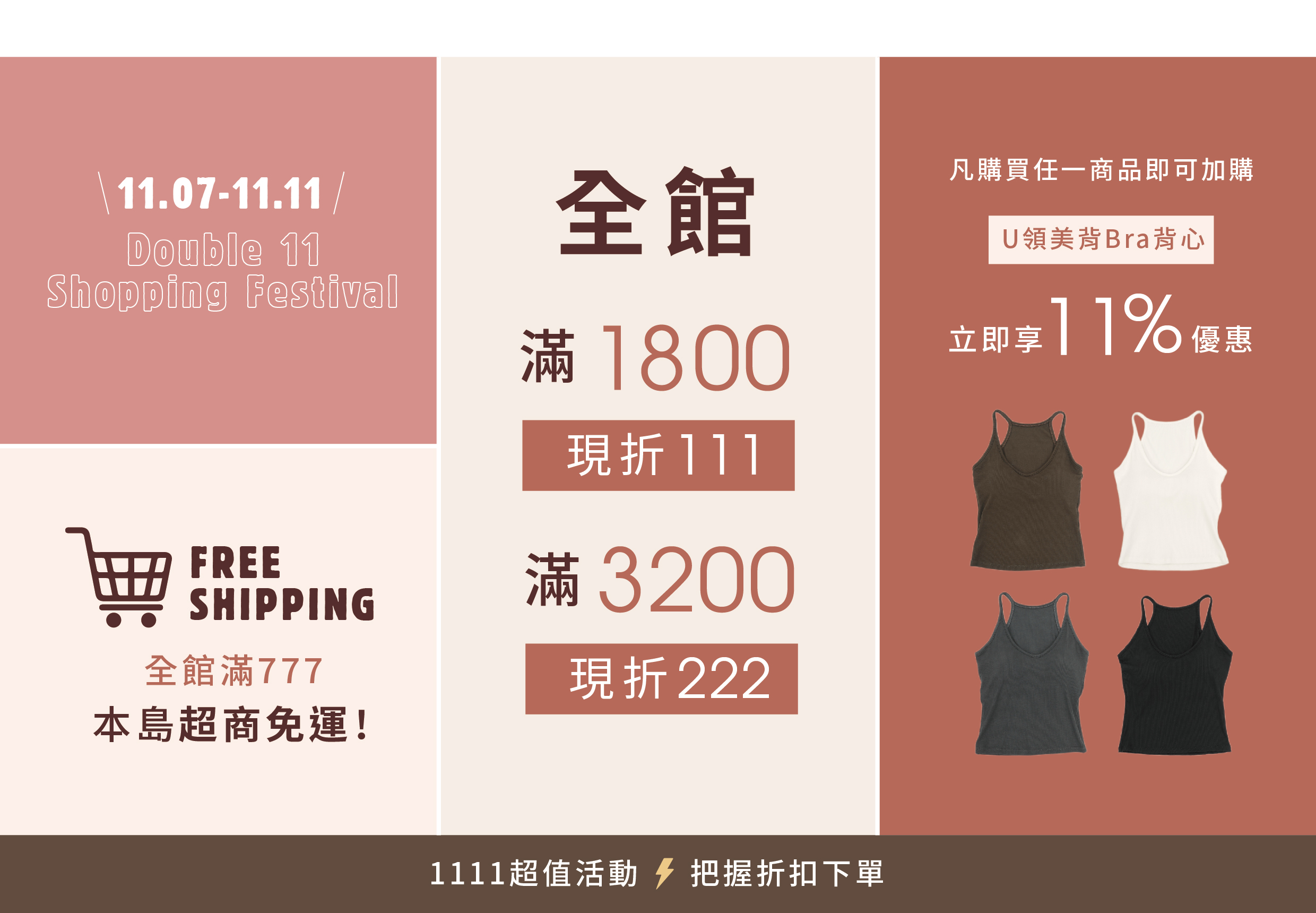 • │雙11限定活動│ 全館滿1800現折111 滿3200現折222 會員優惠同享✨ 滿777本島超商即免運 !