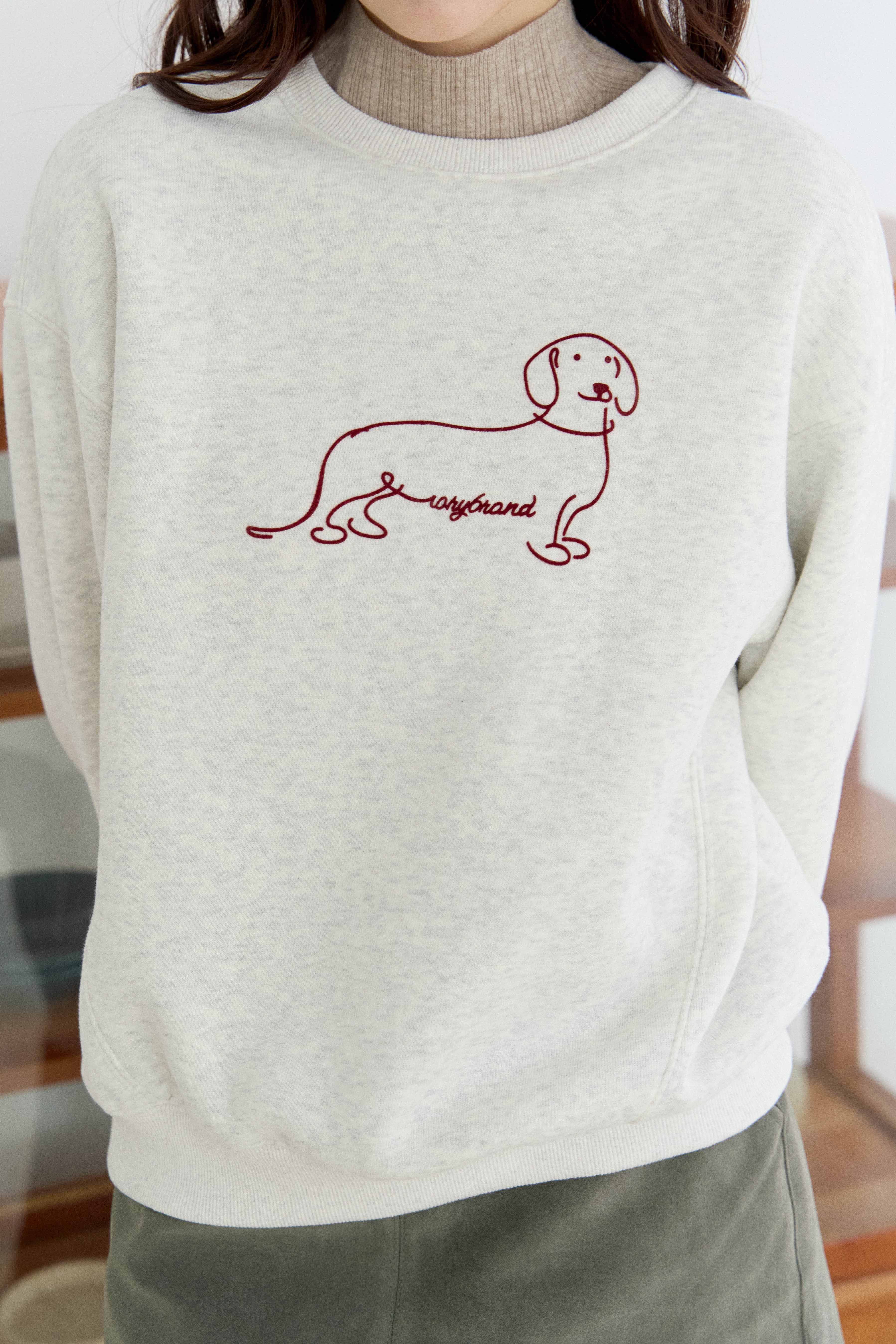 線條臘腸狗刷毛大學TEE