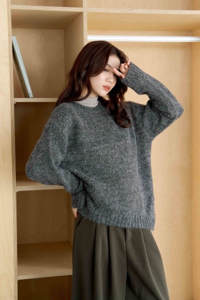 混色面料 / 參雜小亮片設計 / 下擺斜切設計 /  領口、袖口、下擺直紋設計