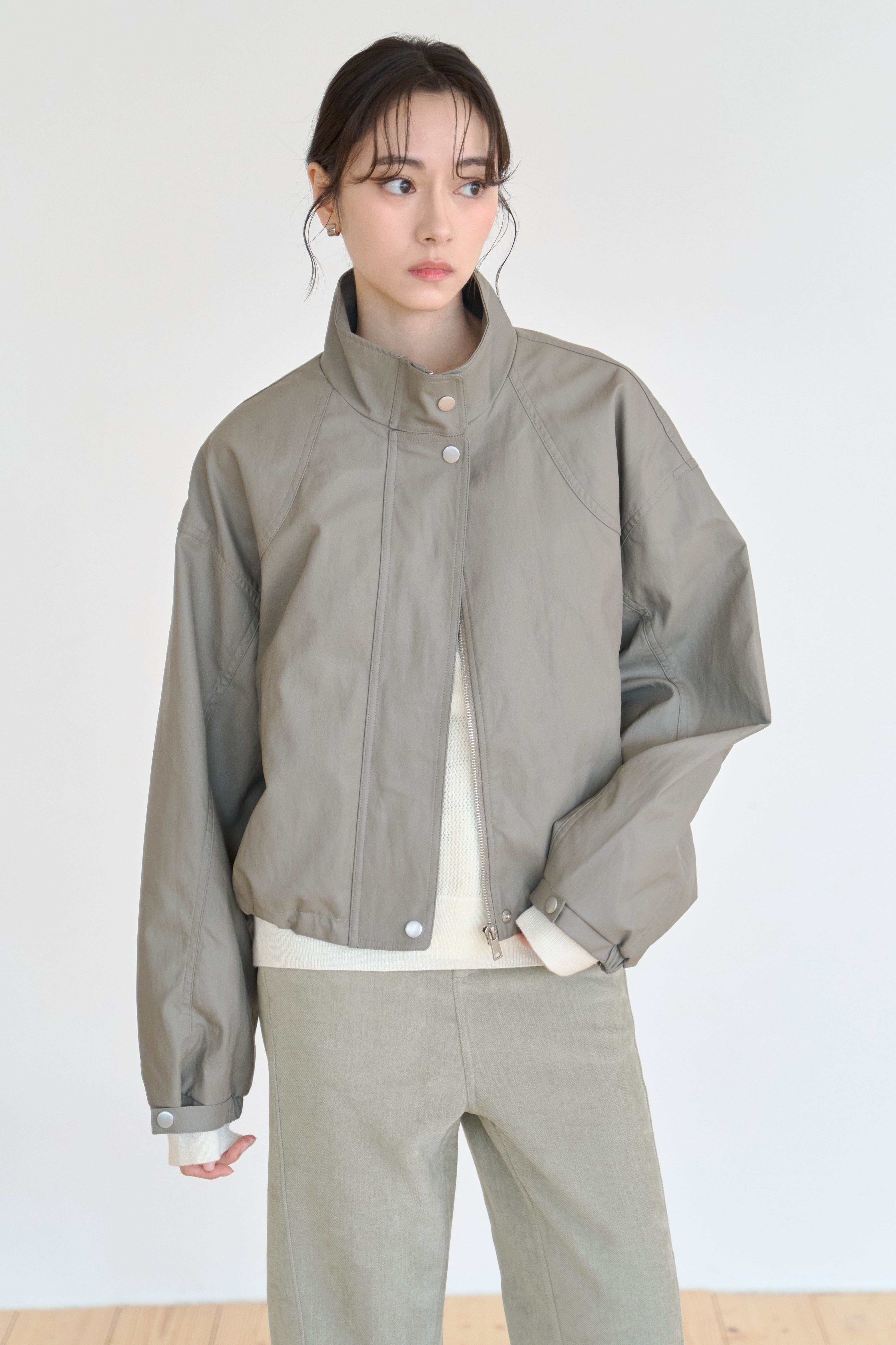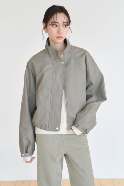立領壓釦抽繩皮革外套