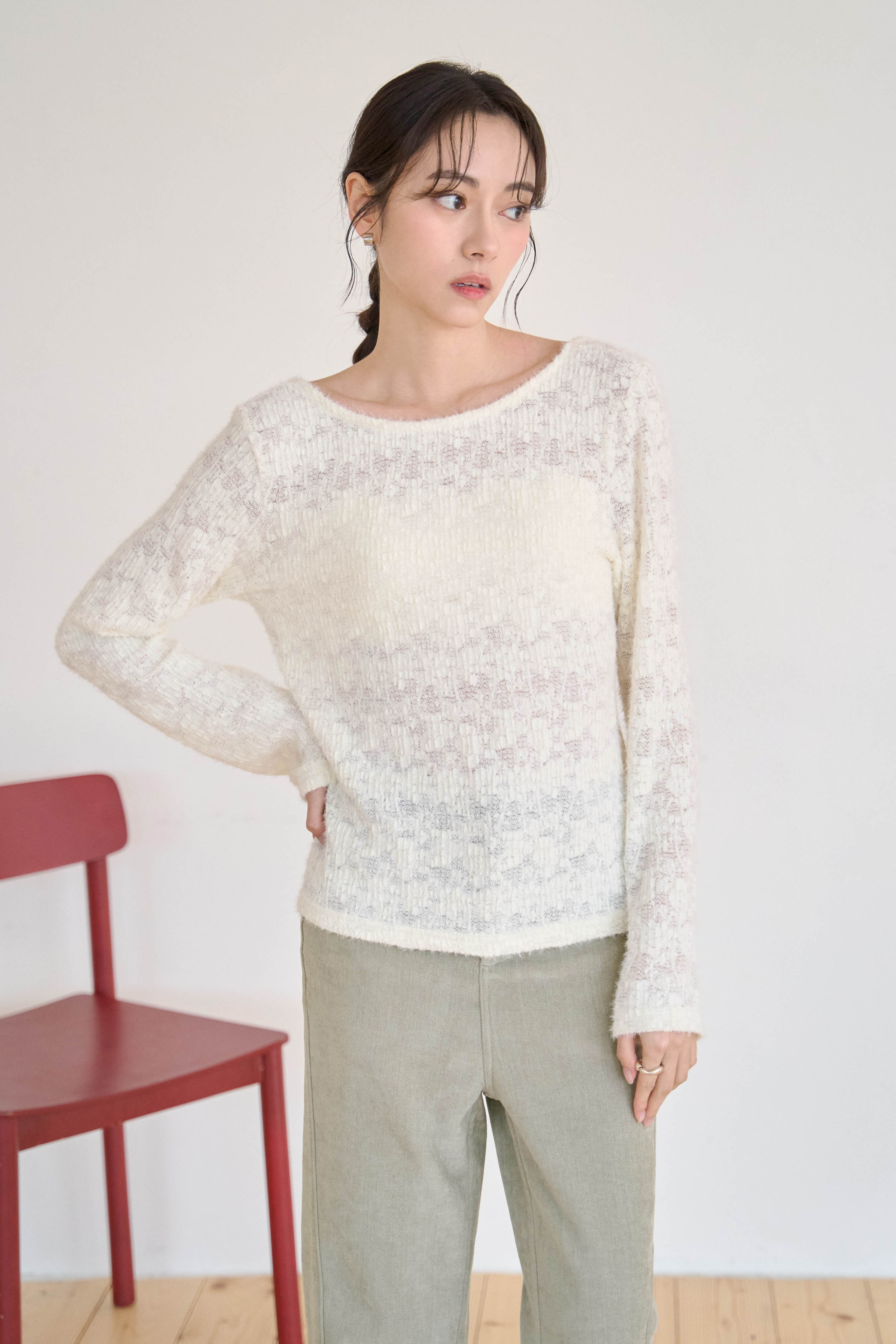 羽毛蕾絲微透針織衣