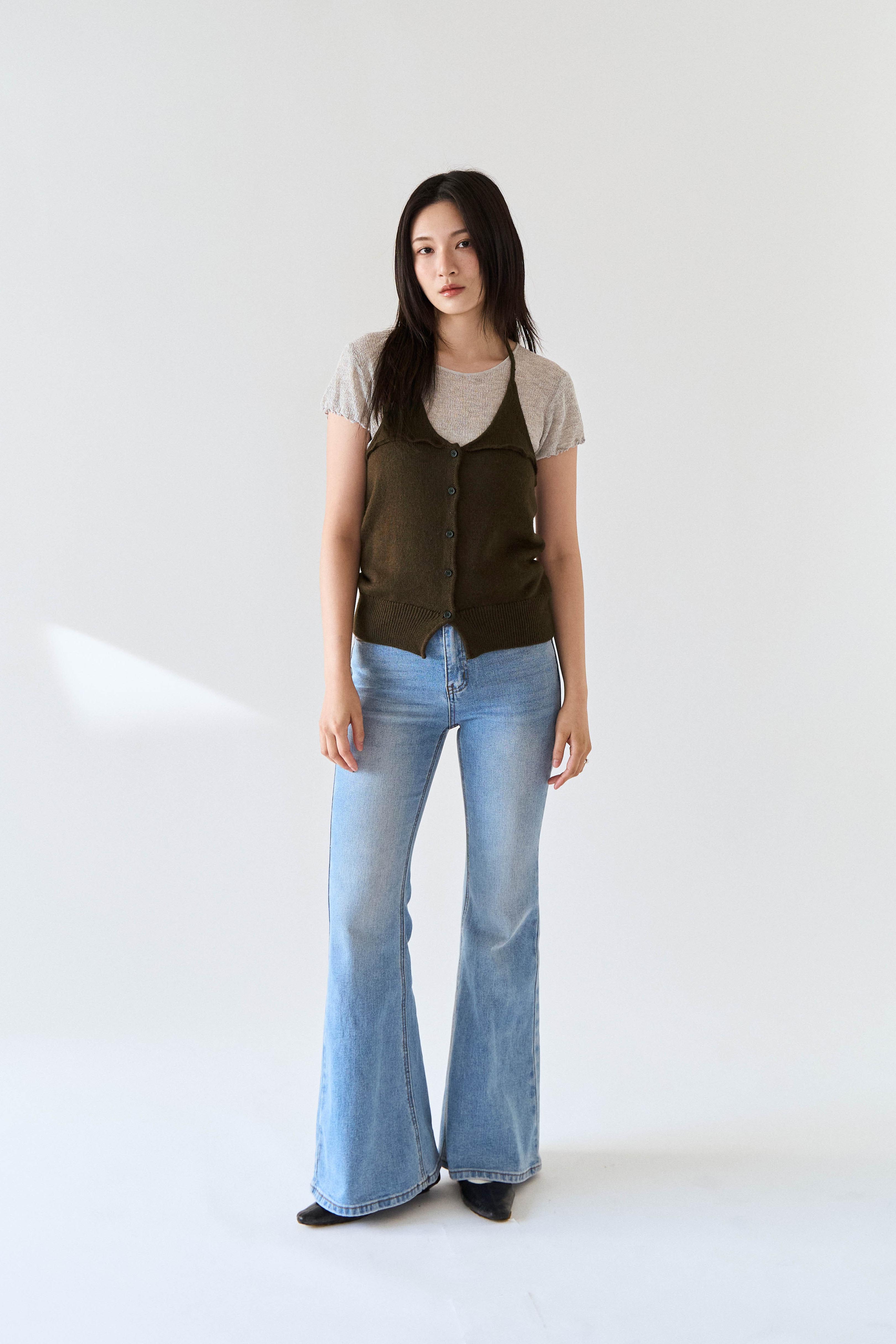 (預)淺刷色合身喇叭牛仔褲