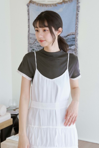 舒適萊賽爾面料 親膚且透氣涼爽 / 側腰間彈性抓褶收腰 修飾顯瘦 / 袖口、下擺拼接百褶造型