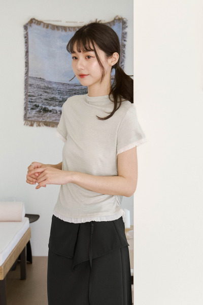 百褶拼接微領柔膚上衣