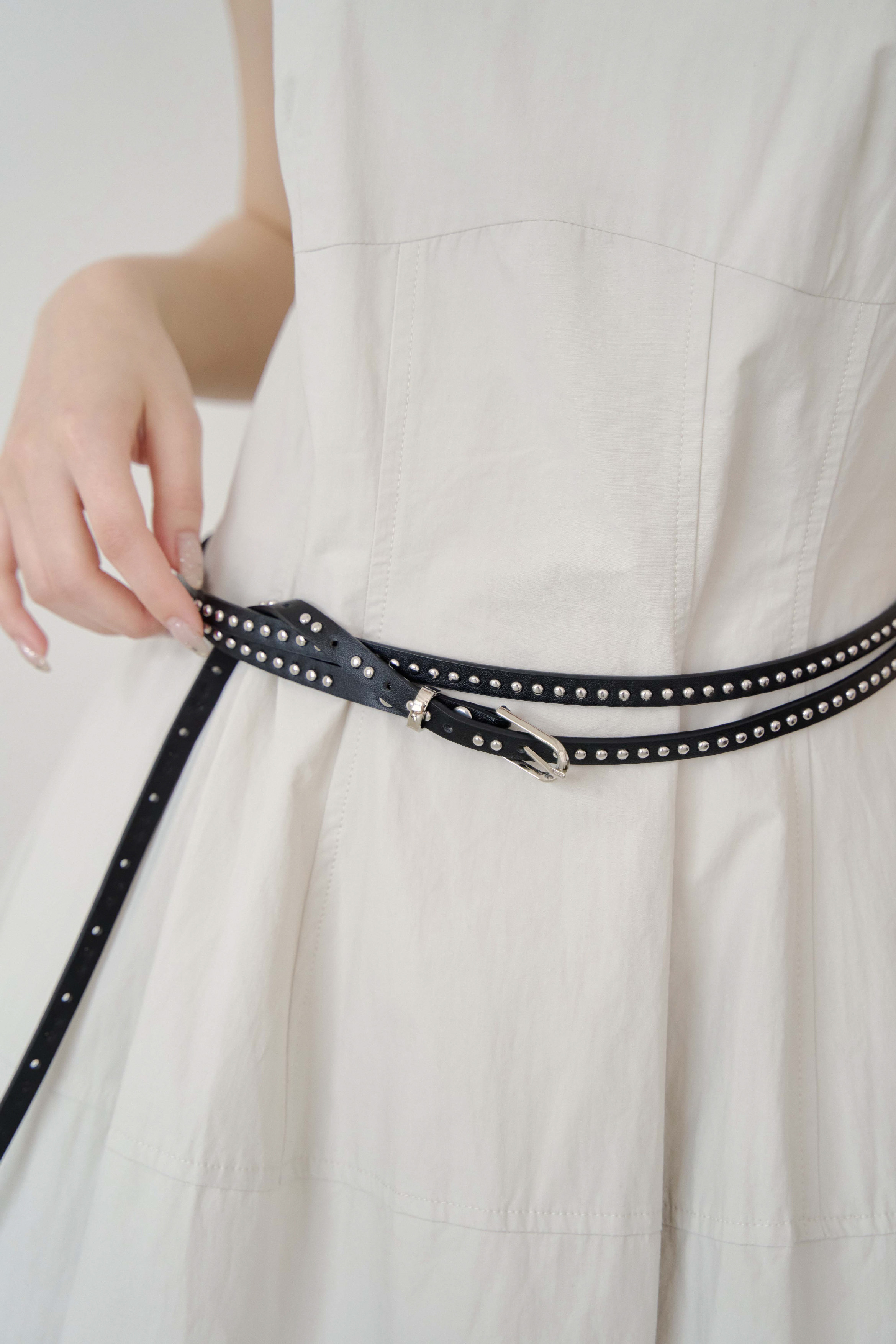 小圓釘造型 / 中間金屬圈扣 / 雙環增添造型感
