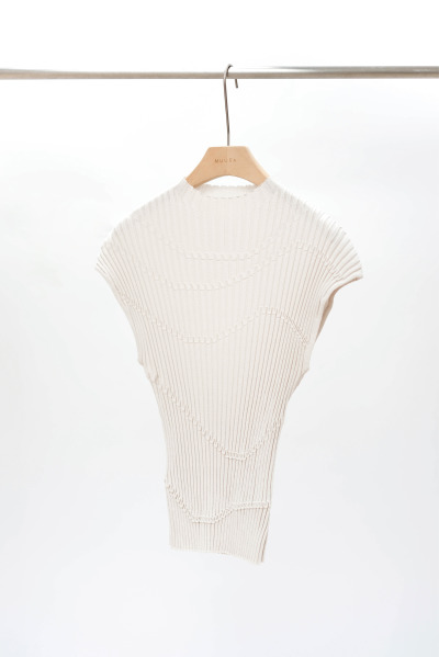 坑紋彈性布料 / 立領版型 / 不規則立體壓線造型
