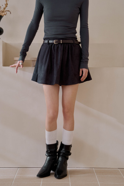 麂皮絨面感面料 / 後腰節鬆緊拉鍊設計 / 前後抓皺造型,增添整體立體感 / 兩側有隱形口袋 / 安全褲型內裡