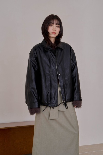 霧面皮革鋪棉中版外套