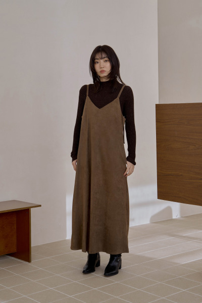 質感麂皮面料,適合秋冬搭配 / 肩帶可調整長度 / 可搭配打底做多層次穿搭 / 有內裡 / 兩側有隱形口袋