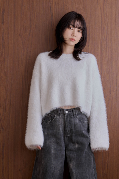 貂毛絨感短版毛衣