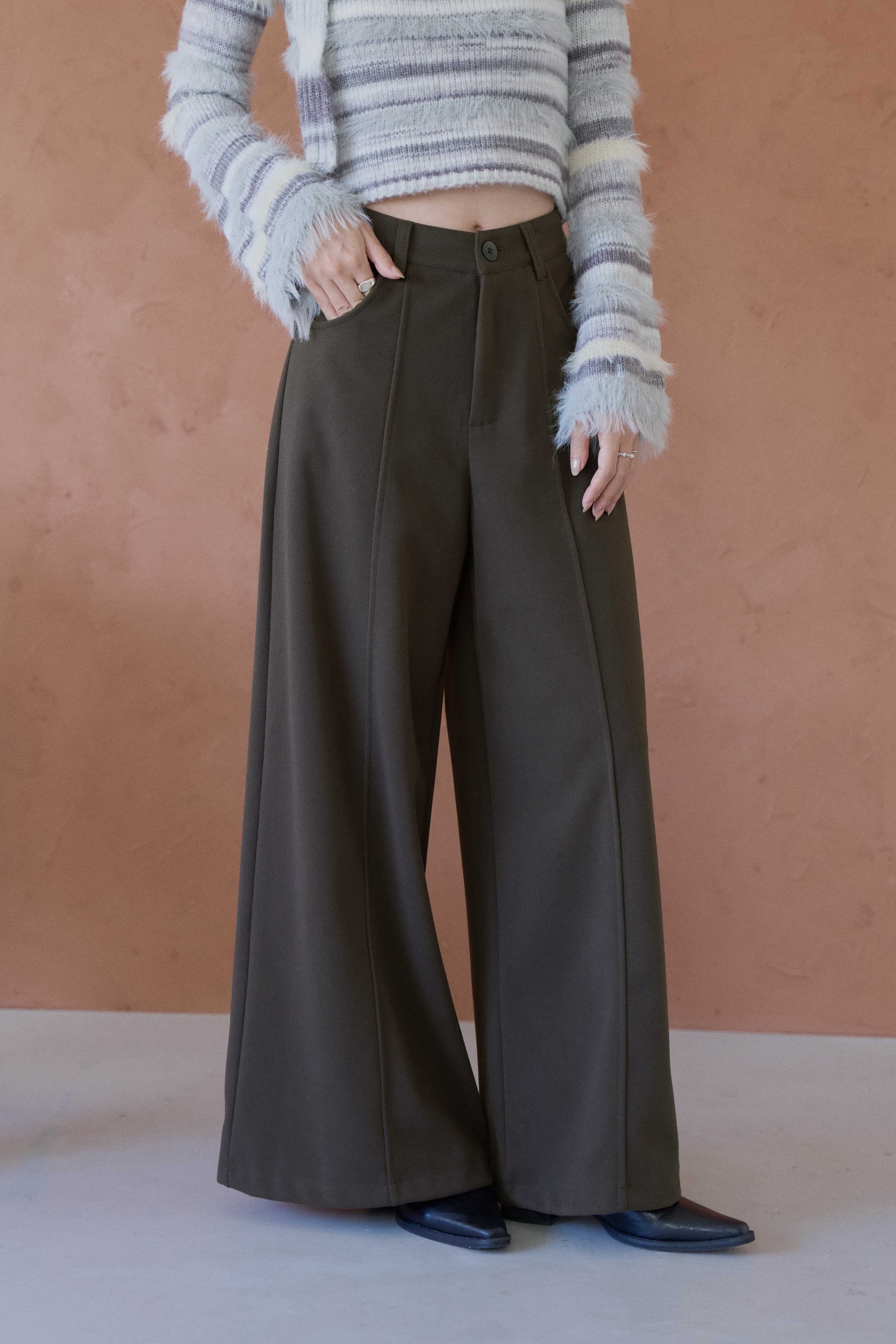 厚毛呢保暖面料 / 直中線設計 / 兩側圓弧口袋 / 寬擺版型 / 有褲耳可搭配皮帶