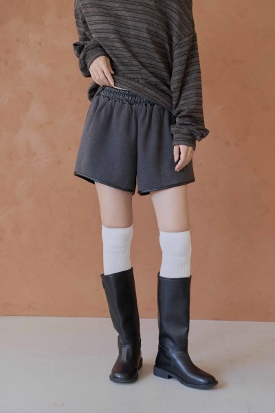 皮革拼接毛呢短褲