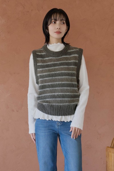 配色細寬橫紋 / 表面磨毛感造型 / 領口、袖口、下擺羅紋設計