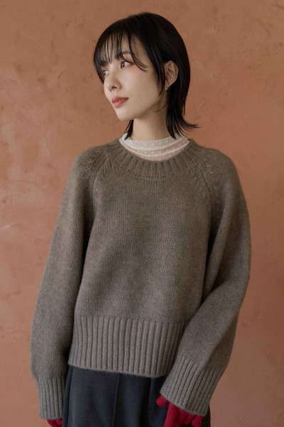 面料厚實保暖 / 澎袖造型 / 無肩線設計 / 接袖處織紋細節 / 領口、袖口、下擺羅紋設計