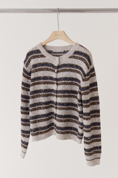 面料參雜混色織線 / 配色間隔橫條紋 / 同色系鈕扣 / 真排釦,可作為上衣或開衫穿著