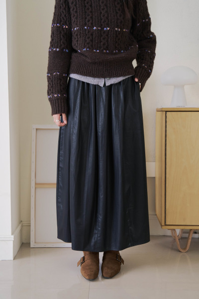 柔滑皮革面料 / 微花苞版型 / 直車線細節 / 全鬆緊腰圍 / 兩側有口袋 / 無內裡
