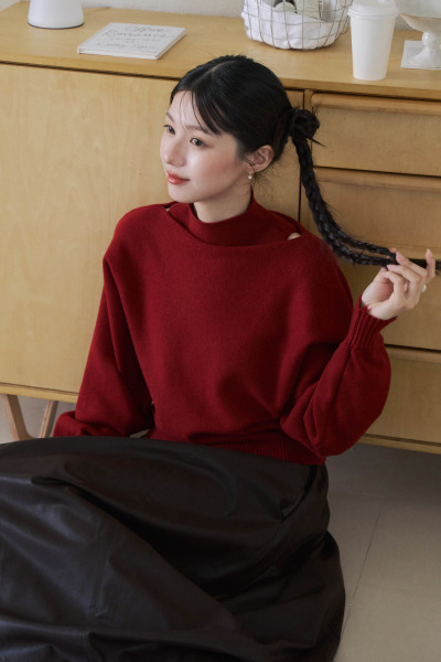 外罩:柔軟針織面料 / 落肩連袖版型 / 船型領口 / 袖口、下擺坑條紋設計