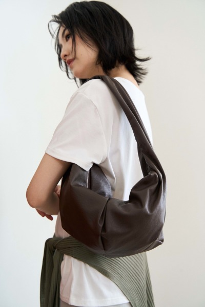柔軟皮革 / 內摺線造型 / 拉鍊式開合 / 內有拉鍊暗袋 / 單肩背 不可調式
