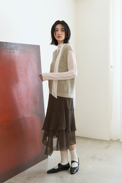 點點不規則雪紡中裙