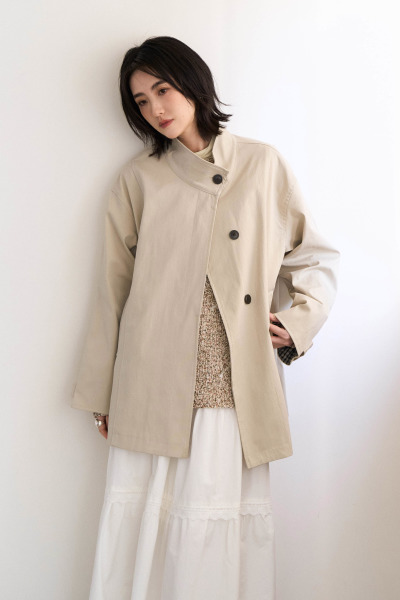 挺版棉質料 / 領單釦,下排暗釦設計 / 可立領或翻領 / 袖口拼接格紋布 / 袖口雙壓釦設計 可調節鬆緊度 / 袖身斜車線設計 / 兩側斜口袋 / 有內裡