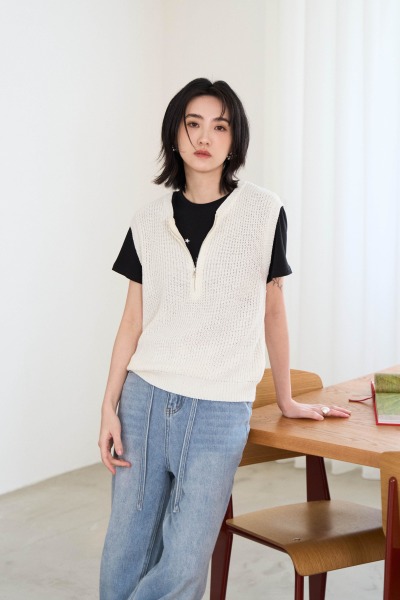 開襟半拉鏈細織背心