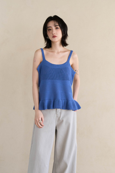 多種不同織紋 / 圓弧形領口 / 下擺寬荷葉造型 / 寬鬆版型 亦可做疊搭造型 / 肩帶不可調