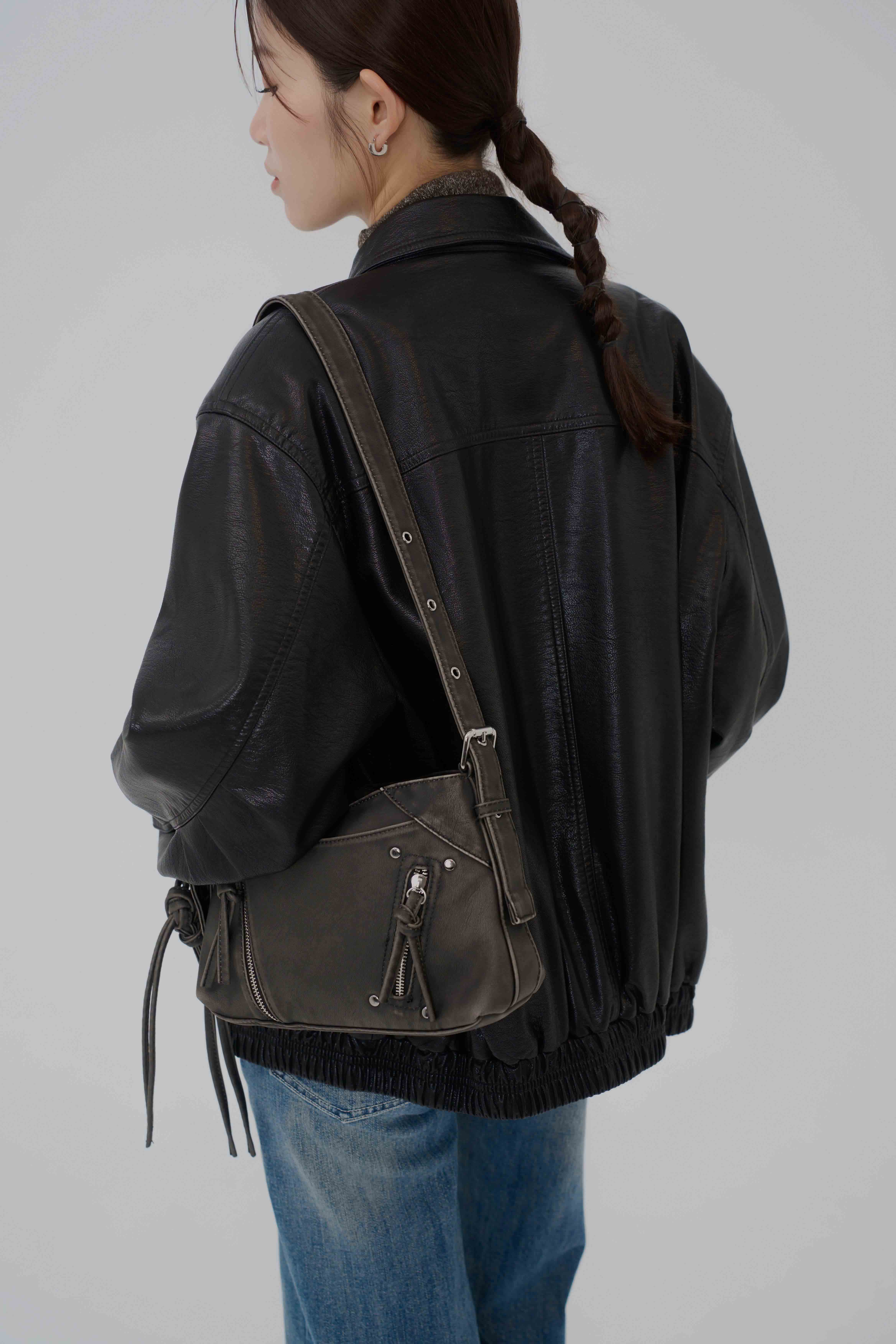 雙拉鍊開合,拉頭飾帶造型 / 可調式肩背帶 / 內有細節小暗袋 / 洗舊感造型 / 前後拉鍊小口袋