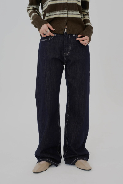 撞色車縫線造型 / 挺版丹寧面料 / 兩側有弧形口袋,後臀有貼式口袋 /