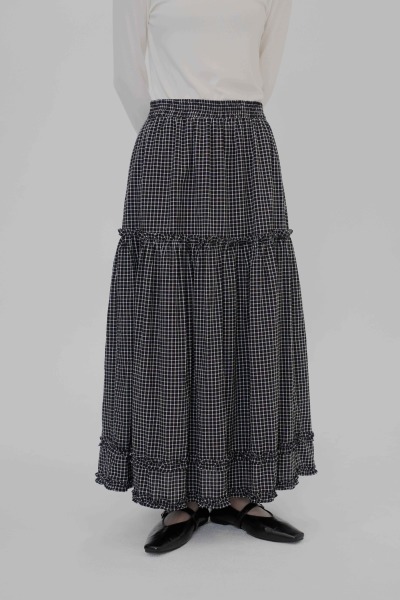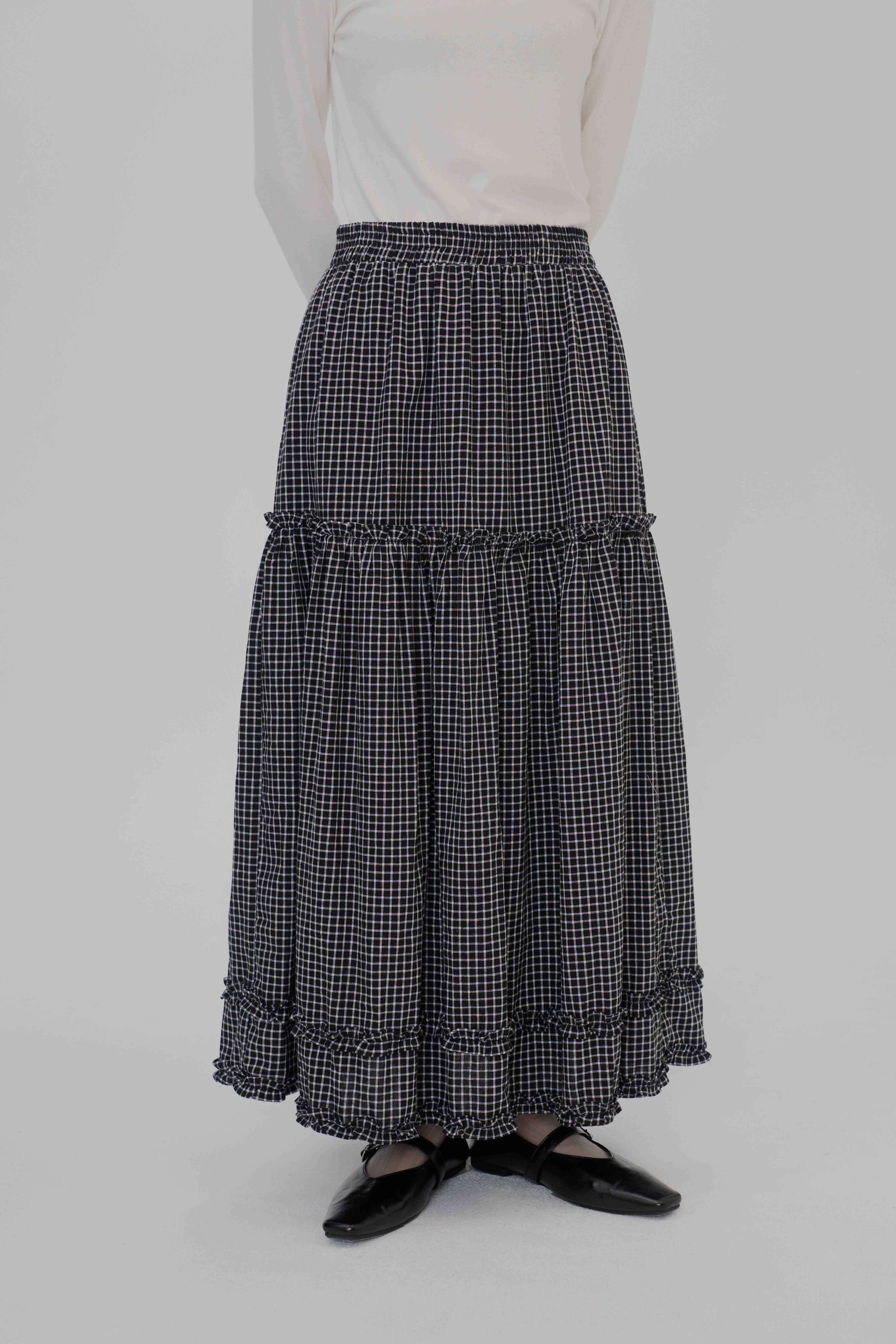 腰節彈性鬆緊帶設計 / 無口袋 / 有內裡 / 蛋糕澎澎裙造型 / 荷葉抓皺花邊設計 / 格紋可愛設計