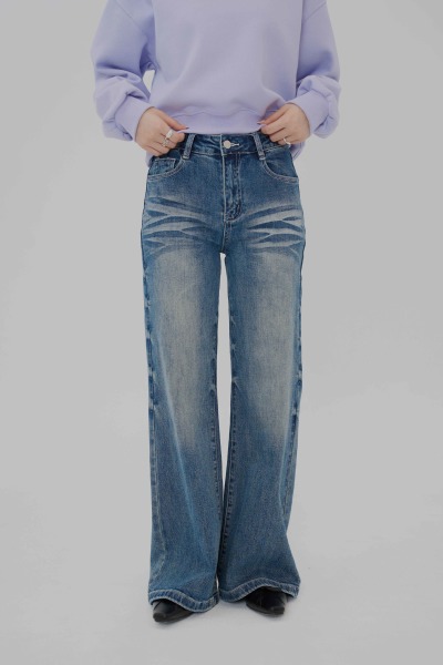 時髦刷色牛仔面料 / 微喇叭修身版型 / 兩側有弧形口袋,後臀有貼式口袋 /