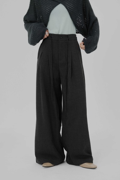 隱藏繫帶摺線西裝褲