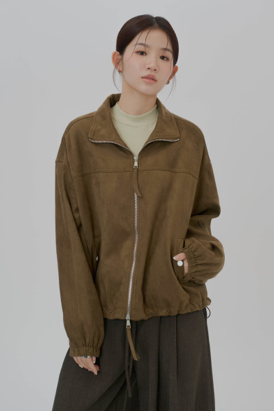 麂皮雙拉鏈寬鬆外套