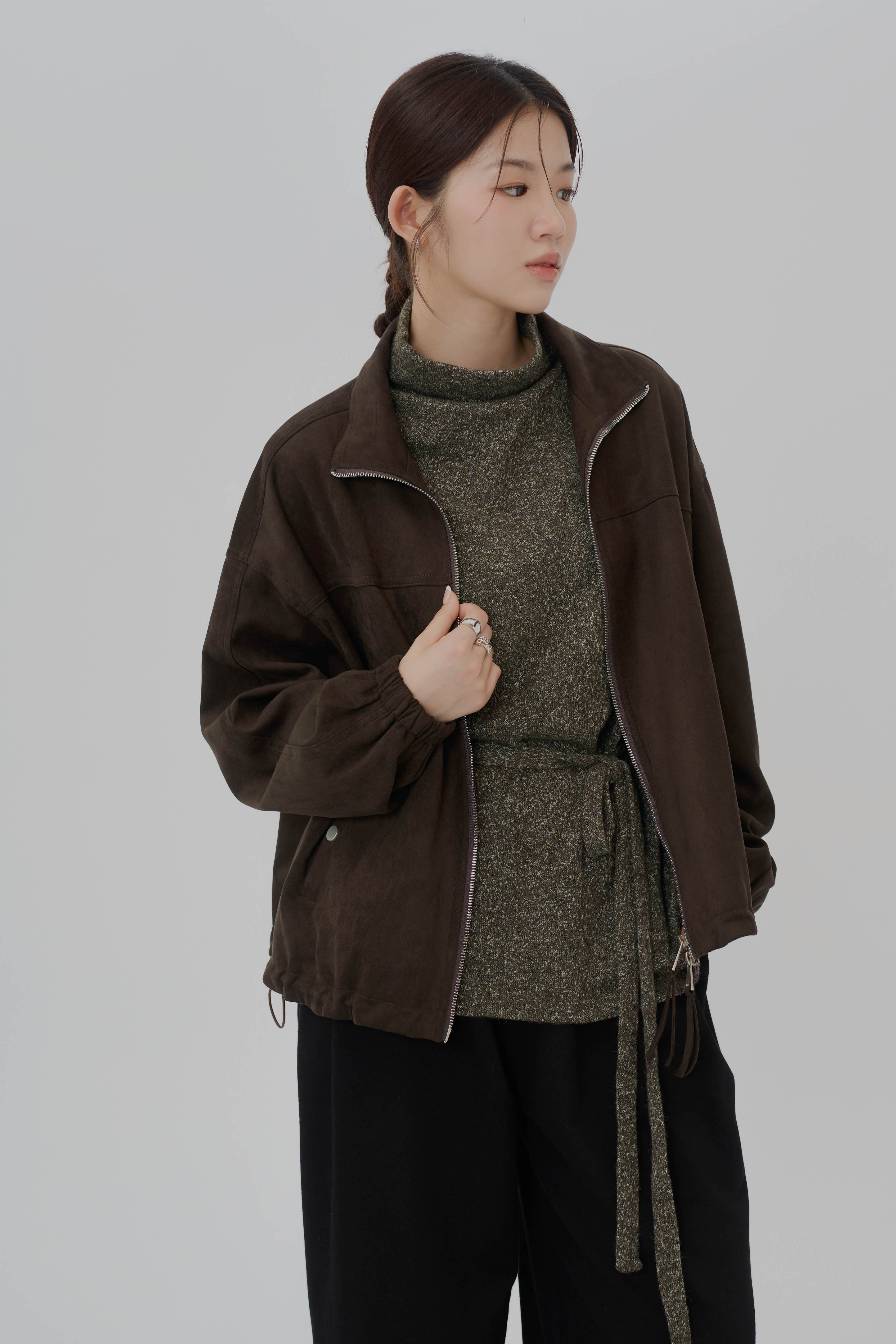 可立領、翻領變換穿搭 / 金屬雙拉鏈,拉頭飾帶造型 / 質感麂皮面料 / 有內裡 / 前有裝飾壓釦斜口袋 / 下擺鬆緊,內有調節環可調節