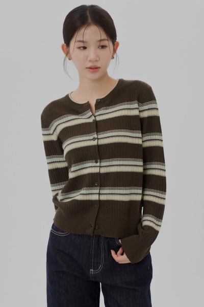 條紋配色面料 / 真排釦設計,亦可作為小外套搭配 / 領邊雙色造型 / 薄款針織面料,秋冬皆合適