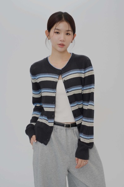 條紋配色面料 / 真排釦設計,亦可作為小外套搭配 / 領邊雙色造型 / 薄款針織面料,秋冬皆合適