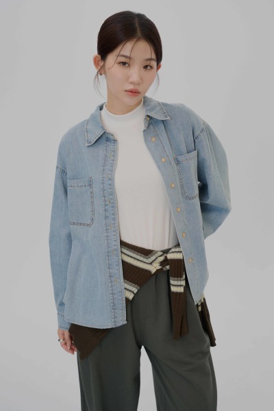 薄感丹寧面料 / 經典百搭款式 / 前胸兩貼式口袋 / 下擺圓弧造型