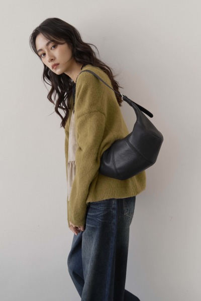 壓紋皮革面料 / 斜線造型 / 拉鍊式 / 內有一拉鍊袋一暗袋 / 可調式長、短肩背帶可替換