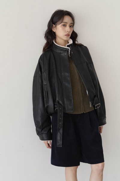 柔軟紋理感皮革面料 / 衣身、袖口內刷厚毛絨 保暖性極佳 / 袖身無拼接毛 降低厚重感及臃腫 / 領處雙釦設計 / 隱藏拉鍊 / 前兩側有口袋 / 袖口壓釦設計 / 下擺鬆緊造型 / 前下擺固定皮帶環設計