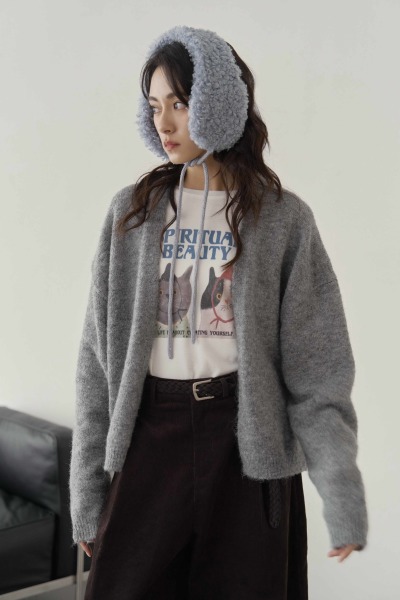 含羊毛成份 / 短纖毛感 / 後領小V設計 / 無釦 / 袖口、下擺羅紋設計