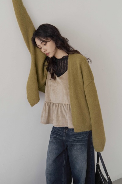 含羊毛成份 / 短纖毛感 / 後領小V設計 / 無釦 / 袖口、下擺羅紋設計