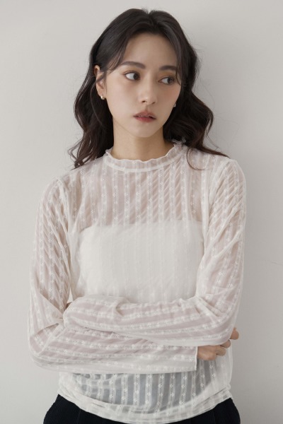 繡線小花透肌上衣