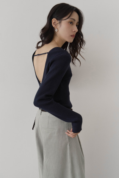 後大U領美背設計 可調式橫帶 / 直坑紋針織面料 / 貼身版型