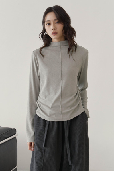 親膚舒適彈性面料 / 面料帶有紋理感 / 直中線造型 / 側身腰處抓摺設計