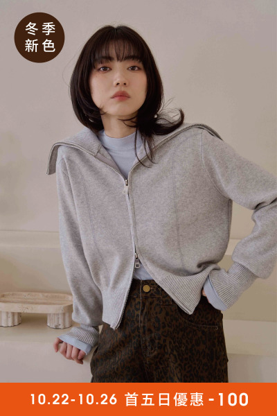 雙頭拉鍊設計 可自由變化造型 / 大翻領直紋造型 / 厚磅針織面料 / 袖口、下擺縮口設計