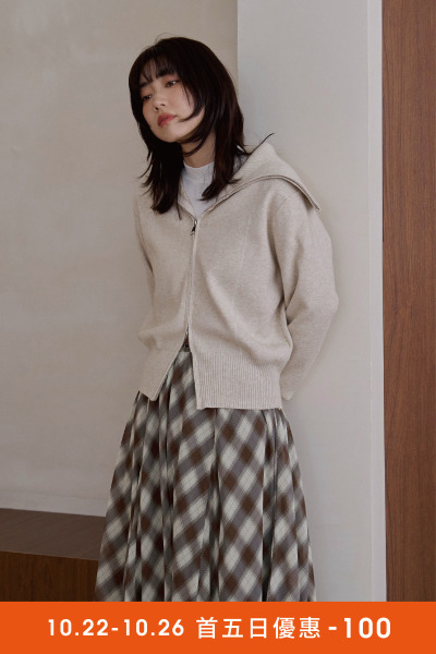 雙頭拉鍊設計 可自由變化造型 / 大翻領直紋造型 / 厚磅針織面料 / 袖口、下擺縮口設計