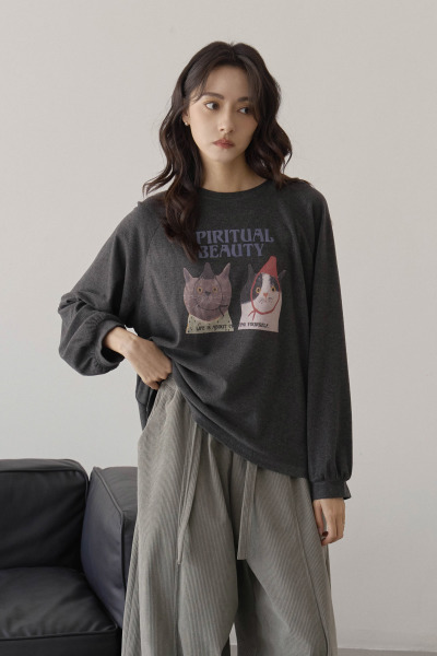 (預)戴帽貓咪畫磨毛TEE
