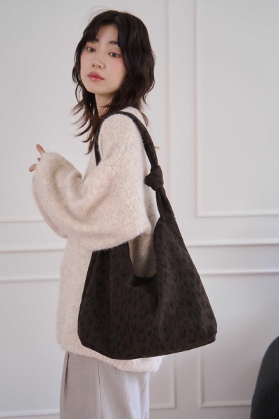 豹紋扭結針織包